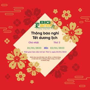 Để thuận tiện trong kế hoạch làm việc giữa Công ty cổ phần Big Farm và Quý khách hàng, đối tác chúng tôi xin thông báo lịch nghỉ Tết dương lịch của chúng tôi như sau: